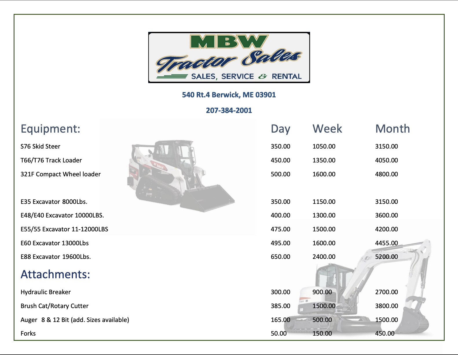 Need equipment for a day, a week, or a season? Our rental fleet is fully maintained and ready when you are. With flexible rental terms, MBW makes it easy to take on projects big or small.